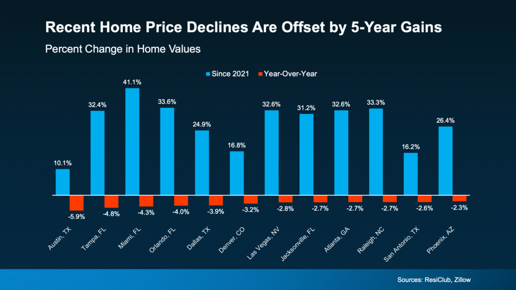 And even in the markets experiencing mild declines, the drops aren’t enough to cancel out the big gains most homeowners have seen in the last 5 years(see graph below):